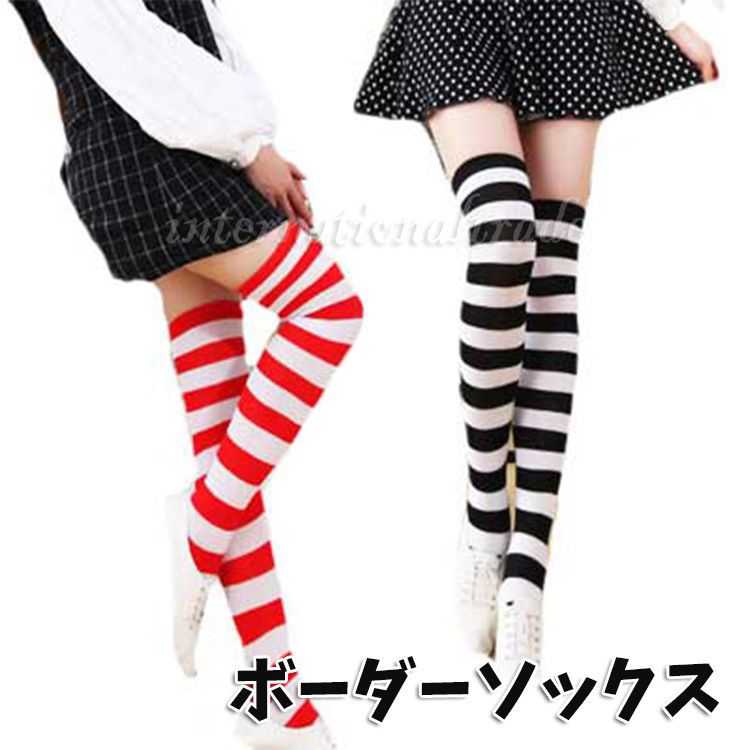 1足持っていると便利なのが、こんなボーダーのニーハイソックス。