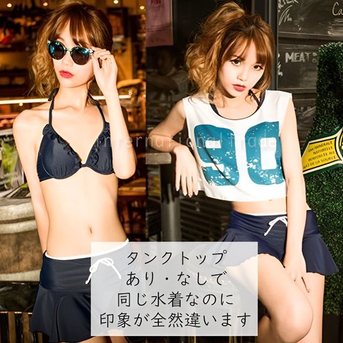 この水着は、ビキニとトップスを自由にコーディネートできるのがポイント。